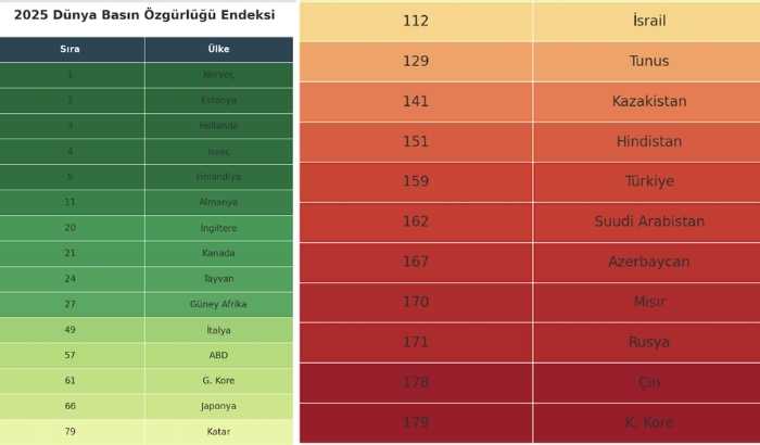 Dünya Basın Özgürlüğü Endeksi 2025: